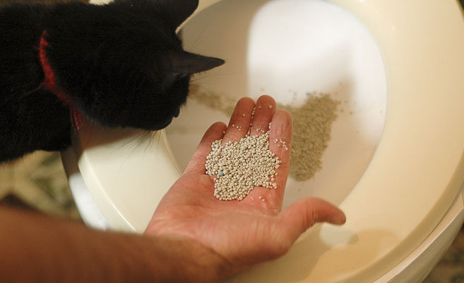 The next step is to replace the litter box with a ‘training box’. This can be made out of anything you want, like cardboard, for example. The only requirement is that the box can carry your cat’s weight. Attach it to the toilet bowl, and lower the seat on top of it. Add some litter to the ‘box’, preferably the kind that can be flushed down the toilet. Clean the training box after every time your cat has used it. Another tip is to mix some catnip through the fresh litter.