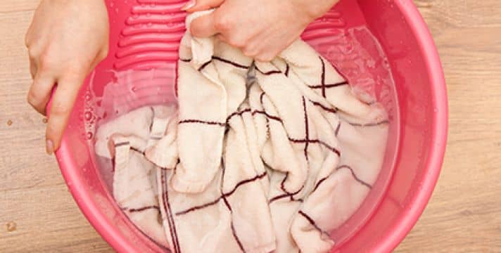 - Wring the item of clothing and try to get as much water out of it as possible (don’t rinse out beforehand!).