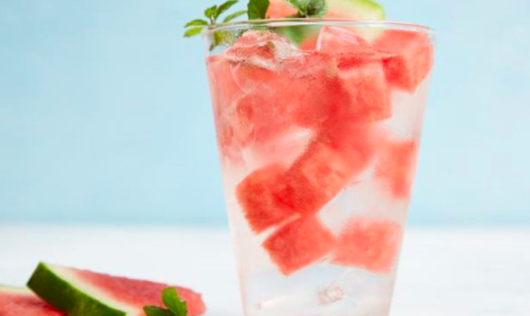 - Pour the coconut water in a glass and stir through the watermelon, lemon and mint leaves.