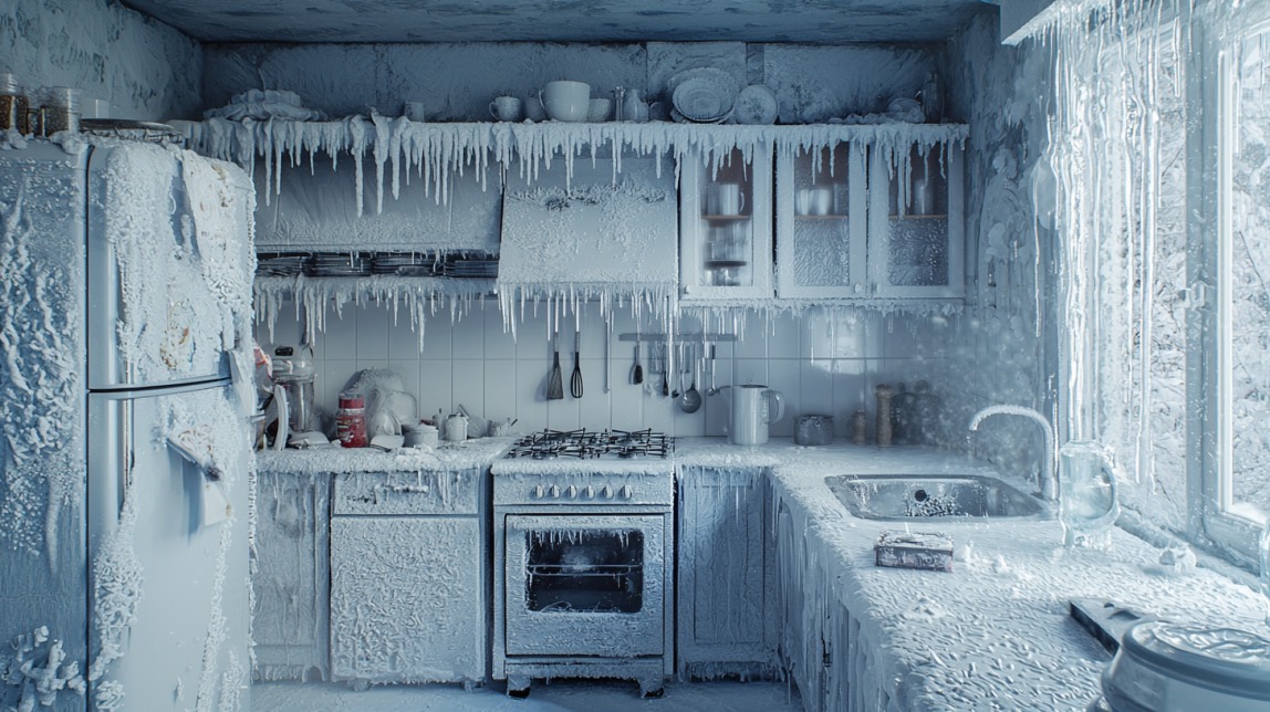 Her living room had become an extension of the winter wonderland outside. Snowdrifts had piled onto her floor, the wind forming delicate dunes of white. Icicles hung from the windowsill, and frost painted intricate patterns across her favorite armchair. Her knitting basket, left near the window, was half-buried in snow, the yarn stiff with frost.