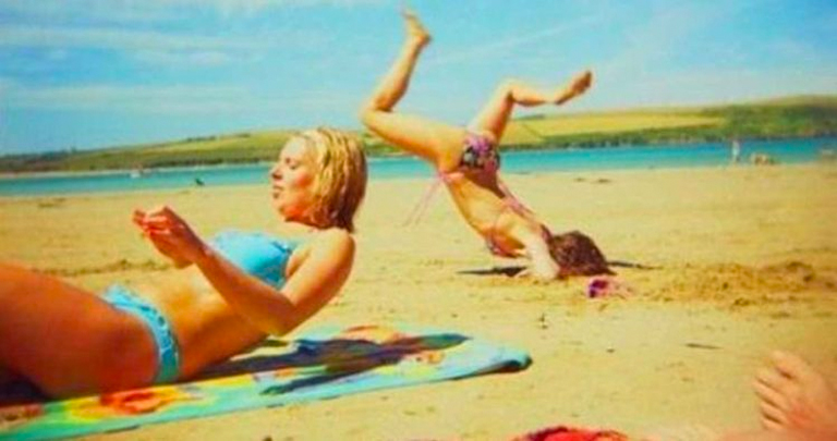 The lady in the front is too busy minding her own business, so she has no idea what kind of antics her friend is up to. Her friend must have slipped, because she’s doing a full faceplant on the sand now. Ouch! Even though we can imagine this is not the way you want to be photographed, it still makes for a very funny picture.