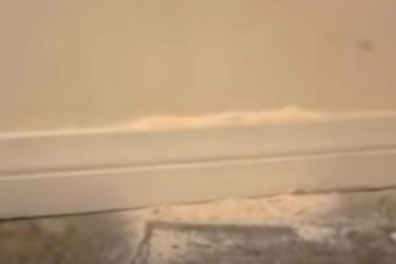 George decided to use his dog’s enthusiasm as a sort of metal detector. The closer George got to a certain spot on the wall, the happier Crosby became. Especially a spot low to the ground seemed to evoke a very violent reaction in the four-legged friend. George decided to get down on his knees and study the spot carefully.