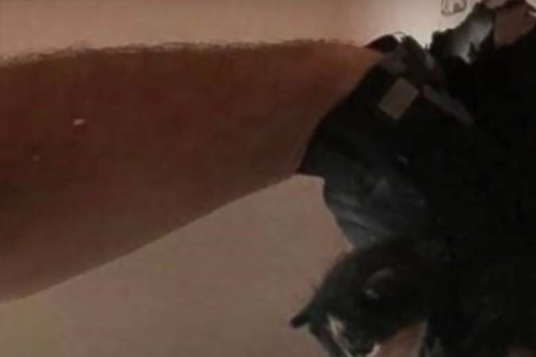 Because the hole was low to the ground, George couldn’t get a good look into it. Even with his night vision camera, there was little to see, so there was nothing to do but feel around to discover where this hole led. George dug his arm into the plasterboard up to his elbow and felt the inside carefully. He was shocked when his fingers suddenly touched something.