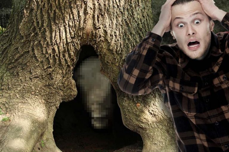 The logger crawled into the tree and shone a flashlight on what was hidden in the trunk. Suddenly he screamed in terror and jumped out of the tree trunk. His face was pale as snow and he couldn’t speak. He had seen something in the tree that had scared him terribly.