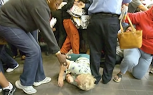 Old woman gets trampled while trying to buy a present for her grandson on Black Friday