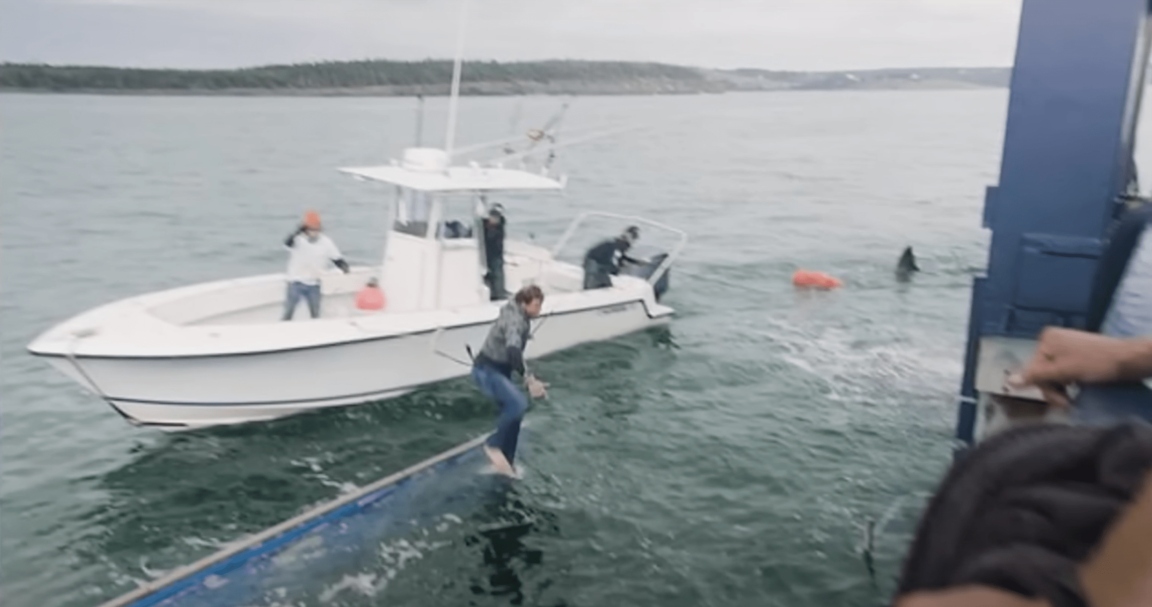 She told the sailors that she needed to make a quick phone call and she hurried to the other side of the deck. Now the sailors were left alone with the giant shark, scared and confused. What the hell was going on?!