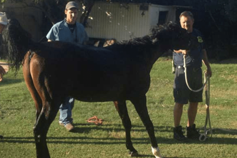 To prevent the unconscious horse from panicking and going straight back in, they slid Stormy far away from the pool’s edge. Then the veterinarian examined Stormy and found that he only had a few bumps and bruises, and was expected to make a full recovery.
