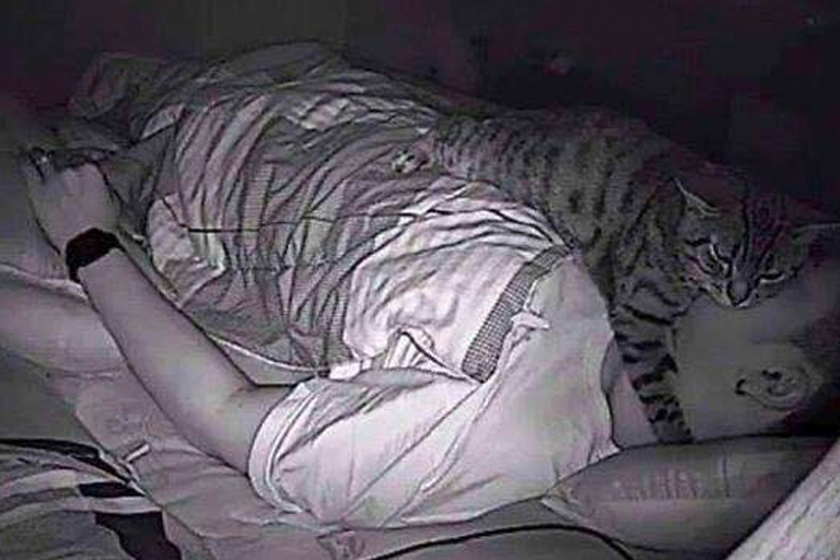 The reason that Luis couldn’t breathe at night was… his cat! On all seven of the clips it was clear to see how Luis’ furry friend crawled closer and closer to his owner, until finally deciding to lay on top of his face. Of course he couldn’t breathe, his nose was being held closed by the cat!