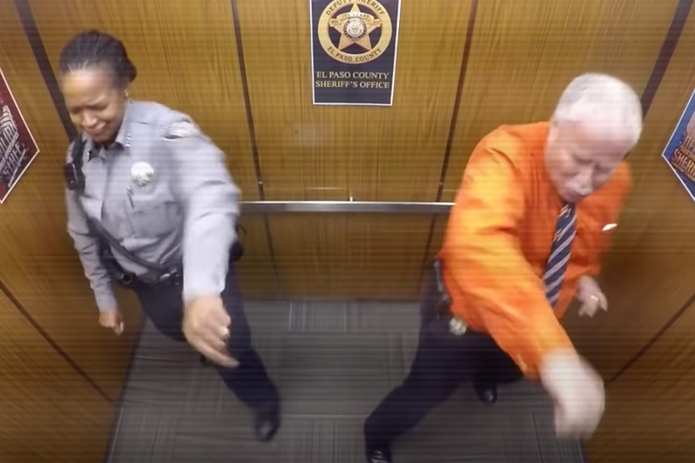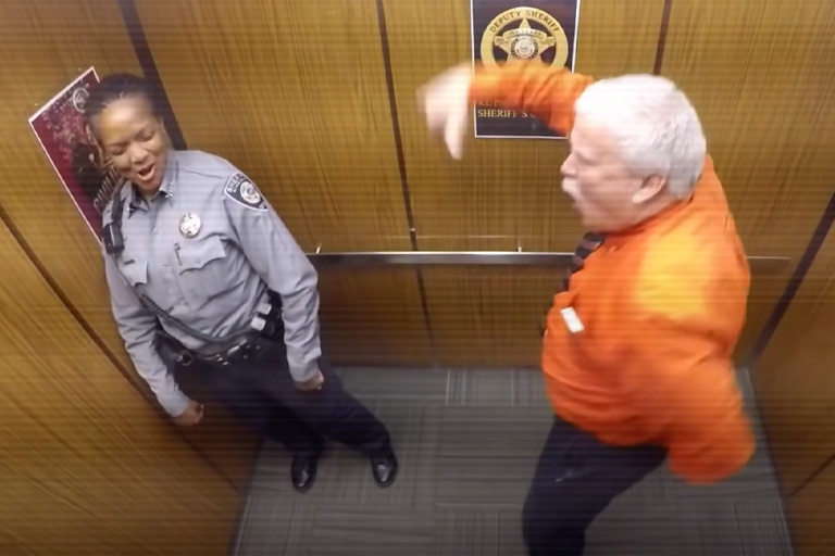 The elevator doors slide open and both Tony and Officer Reed froze to the spot. Their supervisor, the chief deputy officer, stepped into the elevator. Because the two didn’t want to look unprofessional, they decided to stop dancing. So different from the party the two just had!