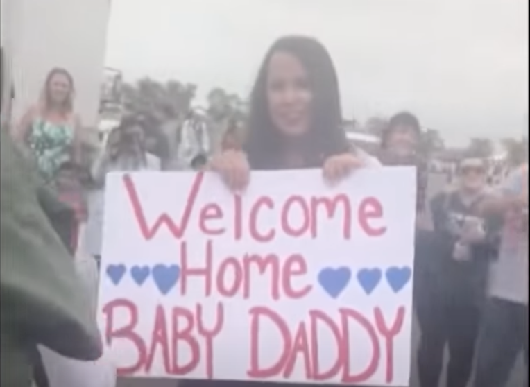 Hidden behind the sign was a text written on Natasha’s shirt: “I am the present Dad left behind before he left,” it said. And under the shirt? Natasha’s big old baby belly.
