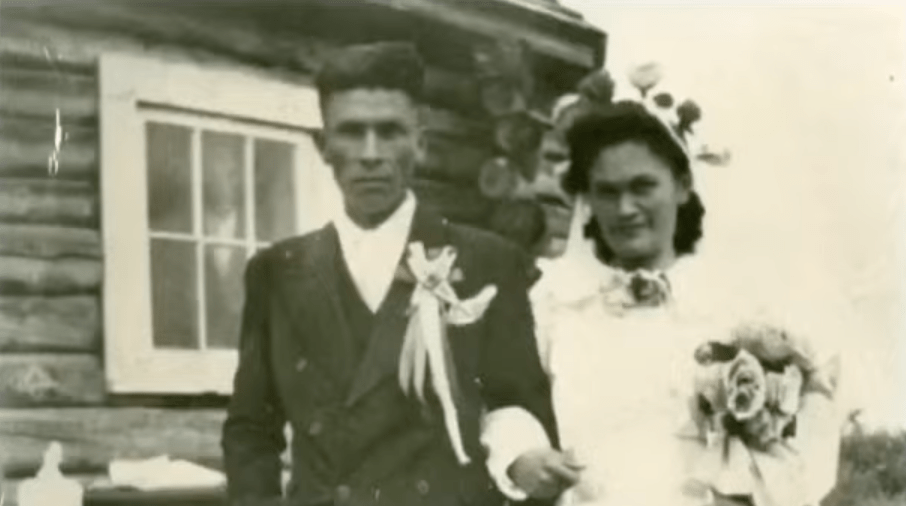 At first glance, this picture of a happily newlywed couple posing in front of their house appears to be a beautiful and ordinary image. But upon closer inspection, something strange and unsettling can be seen.