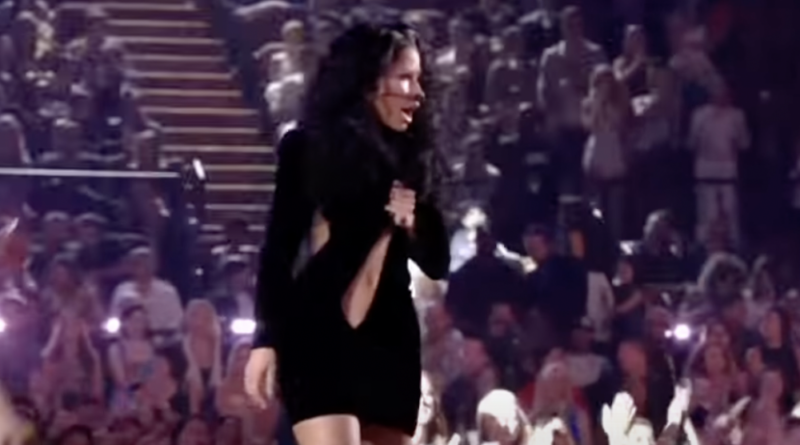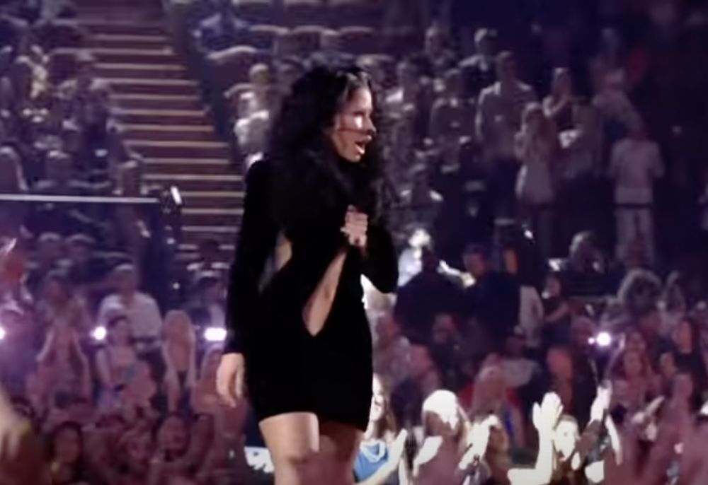 When Nicki Minaj attended the MTV music video awards she had about 30 seconds to change her outfit. So her team quickly got her to put on a little black dress and zipped it up. But then when she was performing on the stage the most terrible thing happened to her: her dress had torn open.