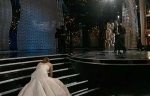 You could know Jennifer Lawrence from her great acting skills. But something else Jennifer is turning out to be really good at, and you might remember her for it, is her managing to keep falling over on the red carpet. At the 2013 SAG awards, Jennifer’s curse for tripping down on the red carpet started. The SAG awards took place a month before the Oscars. When Jennifer accepted the award of best actress at that show, her dress got caught up under a chair or someone’s foot. And that’s where it started, she tripped!