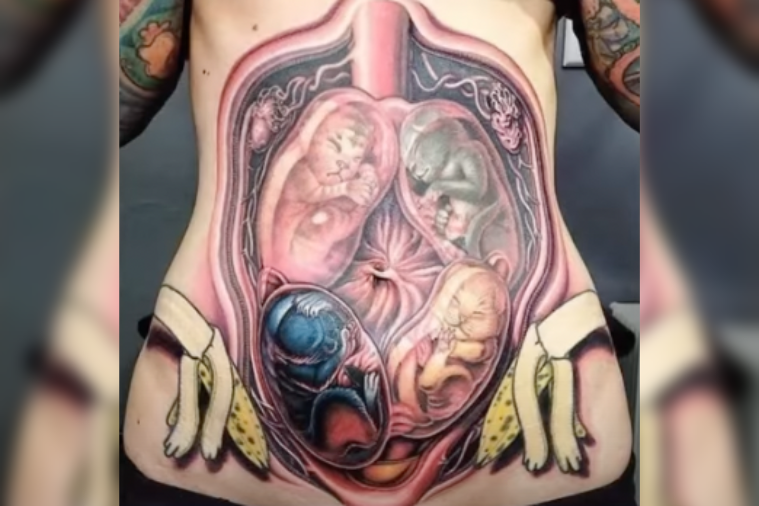 NO WAY! What?! Why would you do this? We have so many questions looking at this horrible tattoo. Even though the alien-looking creatures in the belly seem pretty pleased by the looks of their faces, it still gives off horror-movie vibes to us. The bananas just made it even more strange. Are we crazy or do the bananas have paws? Maybe this is some sort of new species of which we haven’t heard before?