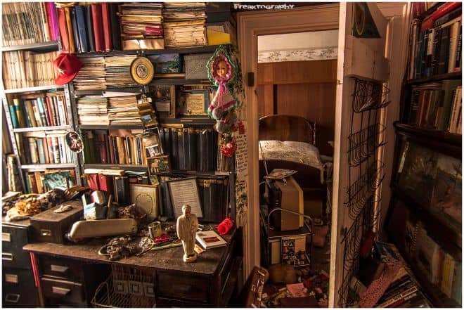 6. The state in which this bedroom was found is very impressive. The photographer said that making a picture was almost a mission impossible due to all the stacks of books.