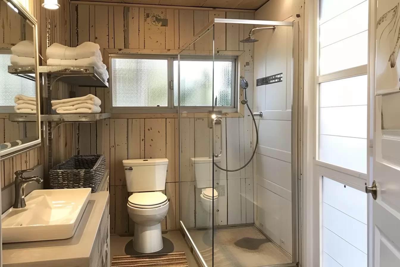 Here are photos of the kitchen and bathroom interiors: