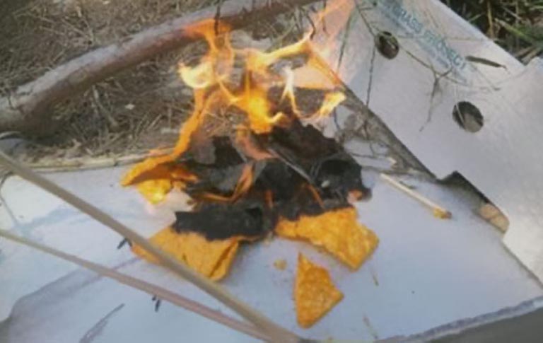Forgot to take kindling with you on your camping trip? Open up a bag of Doritos and use it instead. It burns like nothing else. It’s a super easy way to get a fire started, when you forgot to bring your kindling (and when the twigs and sticks in the woods are too wet from recent rainfall)