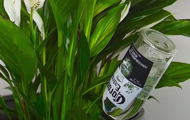 Have a leftover bottle laying around? Fill it with water, turn it upside down and stick it in the soil of a houseplant. Your plant will only use the water it needs, so by using this method you’ll make sure your plants’ soil is always saturated perfectly. Another advantage is that you don’t have to worry about when you need to water them again! Just refill the bottle when it’s empty!