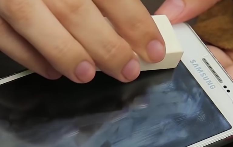 A smartphone screen can look really dirty. After all, your fingers move over it all day long, leaving smudges and marks. Here’s a lifehack on how to get rid of them easily and make your screen look as fresh and new as it did when you first bought it. Simply use an eraser to “erase” the fingerprints and smudges! Works like a charm.
