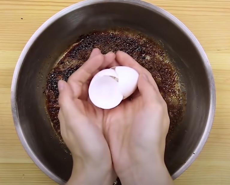 Clean burnt food from pots and pans the easy way: with egg shells!