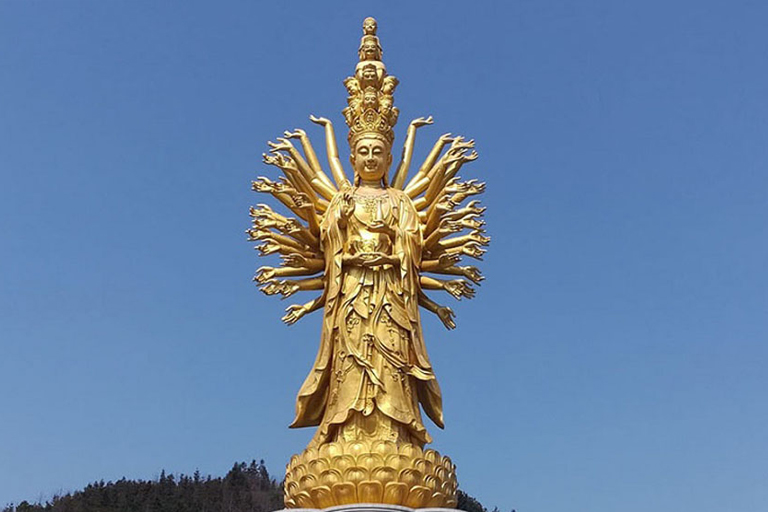 The Guishan Guanyin of the Thousand Hands and Eyes is an enormous statue in China. It’s found at Miyin Temple, a Chan Buddhist temple. It’s a gilded bronze monument which shows the Bodhisattva Guanyin (the same figure as on the previous page). The county government invested 260 million yuan to complete its construction in 2019, aided by local businesses and religious organizations.
