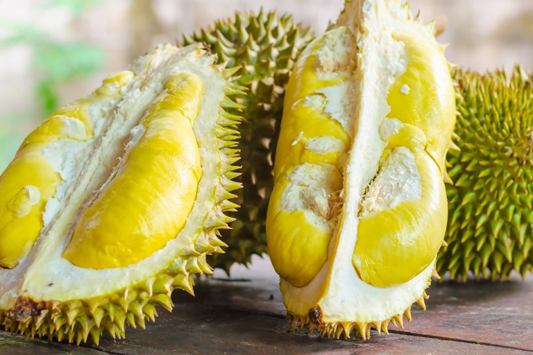The “king of fruits” is known for its extreme smell. The fruit, which is easily recognized because of its dangerous-looking prickly skin, can grow to weigh up to 8kg (17lbs). The taste of a durian can be compared to custard, garlic, onion and blue cheese… combined. It’s a taste you might need to get used to before you are able to enjoy it fully.