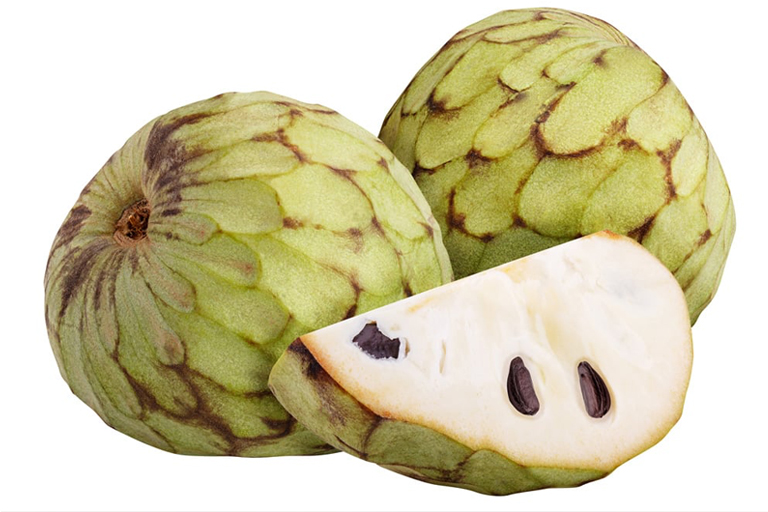 The Cherimoya is an edible fruit native to Ecuador and Peru. It grows in tropical, subtropical regions throughout the world. American writer Mark Twain called the cherimoya “the most delicious fruit known to men”. The inside of the fruit tis creamy and sweet, giving it the nickname “the custard apple”.