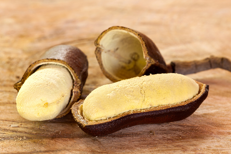 This strange fruit is the fruit of the West Indian Locust, one of the largest trees in the Caribbean. Its pod is reminiscent of a toe. Wen broken, it releases an extremely repugnant smell. Both characteristics are combined in the name “stinking toe fruit”. The flesh of the fruit is dense and sweet.