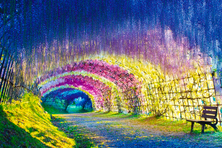 You might have already seen pictures of this picturesque garden in Japan. It’s located in the city of Kitakyushu and sees its fair share of tourists, who can’t wait to walk under the famous purple, blue and white floral arches. In these gardens you’ll find two flower tunnels that are each around 100 meters long, with 22 different varieties of wisteria.