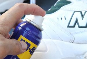 When it comes to sneakers, WD-40 is a person’s absolute best friend. In the winter, you can remove stubborn rock salt spots that build up by spraying them and wiping them down. If you want to make your whole shoe waterproof, spray the entire surface with the stuff.