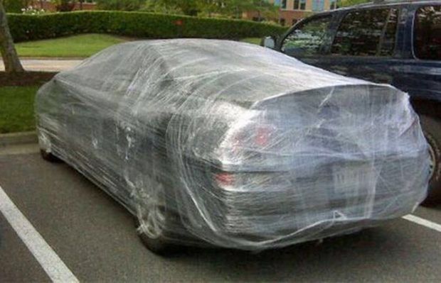 The guests of this wedding played a funny prank on the newlyweds. They decided to wrap their car in cellophane. Just imagine the look on the faces of the couple when they first see their car. They’ll have to postpone the start of their wedding night until after they’ve successfully removed all of the cellophane from their car.