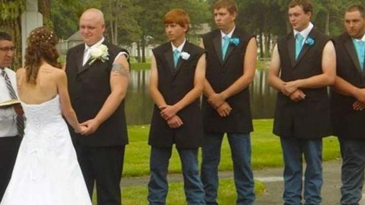 This gang of guys sure doesn’t like sleeves. Even while in a tuxedo at a wedding, these bad boys want their biceps to be in full view. It might look a bit funny, but at least you can tell that they’ve been working out. Who knows, maybe this’ll be the next big thing at the Paris Fashion Week next year.