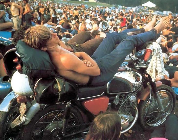 There is no way you’d see the scene pictured in the photo above at a festival today. Woodstock was a festival of freedom. With that came a lack of rules. This festivalgoer was able to bring his motorcycle with him onto the festival grounds, where he used it as a lounger. And who can blame him! It looks quite comfortable.