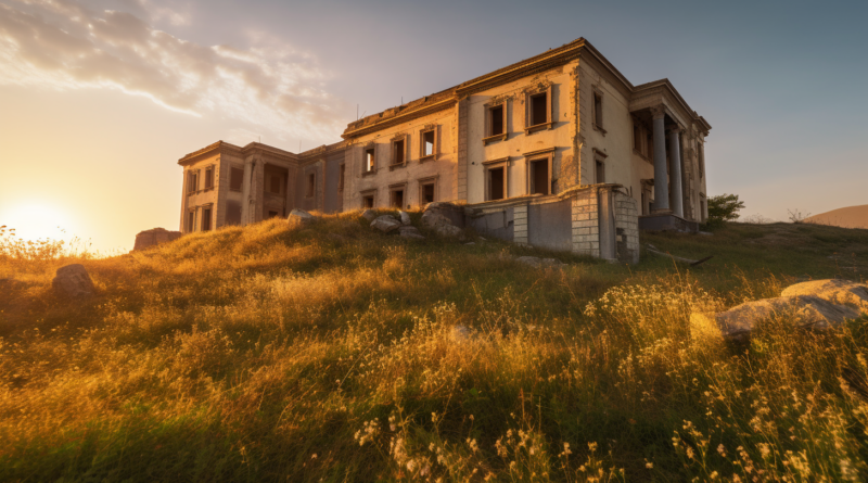 There it stood, perched on the crest of the town’s edge, the manor that had held sway over the townsfolk’s imagination for generations. Its silhouette loomed against the sunset, casting an intricate pattern of shadows that danced and played on the barren lands around it. It was an old manor house, its timeworn stones whispering tales of a bygone era. Ivy crawled over its brick facade, a green tapestry woven through years of abandon, and the once vibrant garden lay overtaken by nature’s reclaim.