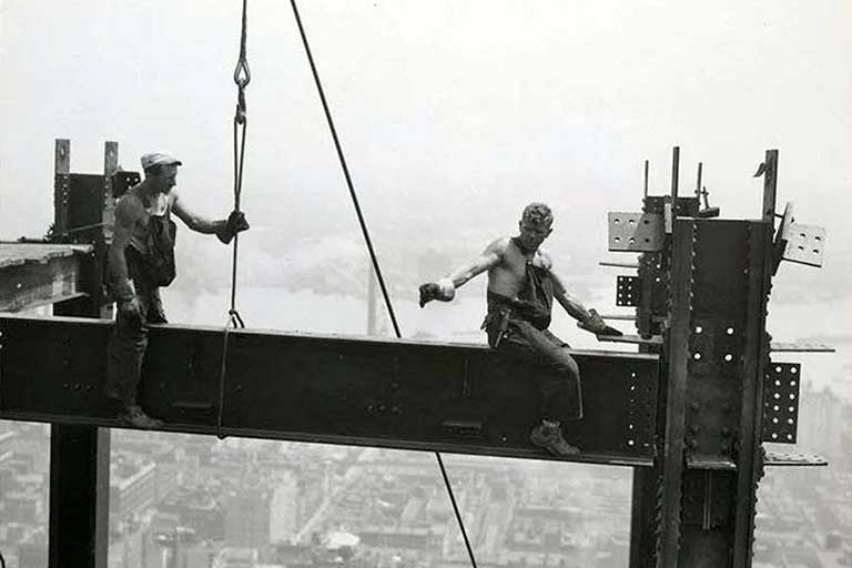 The Empire State Building was the tallest building in the world when its construction was finished in 1931. Contractors had been working on the gigantic tower for the better part of a year, starting in 1930. They did this without any of the safety rules, regulations and laws we have in place today. As you can see, they worked without any safety straps or harnesses, 102 floors in the air. The construction cost 5 workers their lives.
