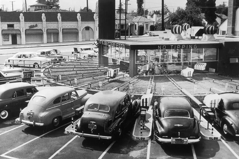 In the ’60s, drive-in restaurants were all the rage. You could get service from the safety and comfort of your own car. The restaurant in the picture above went so far as to install conveyor belts, with which they could easily transport the customers order to their car. Can you imagine coming across something like this today?