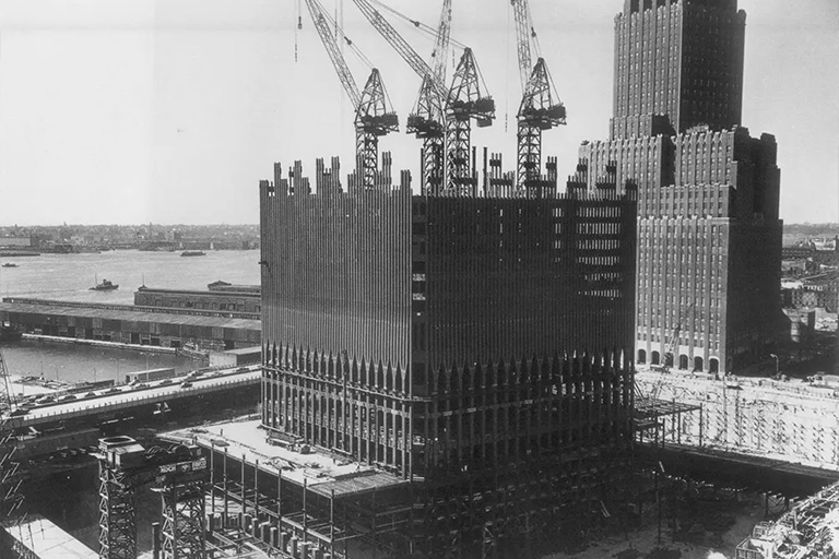 The World Trade Center in New York was built in the ’70s. The buildings were designed by American architect Minoru Yamasaki. The two most prominent buildings, the Twin Towers, were destroyed in on 11 september 2001. Up until then, they had been a prominent feature of New York and was found on many tourist products.