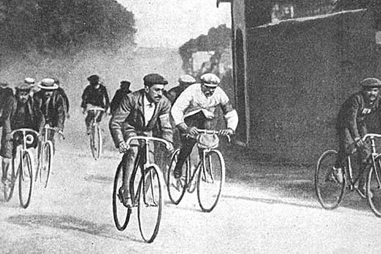 This is a photograph of the first Tour de France, which was hosted in 1903. The bicycle race is still being held today, but back in 1903 it looked a lot different. On the photo above you can see that they used different bicycles than the ones we’re used to seeing today. Their attire is also vastly different.
