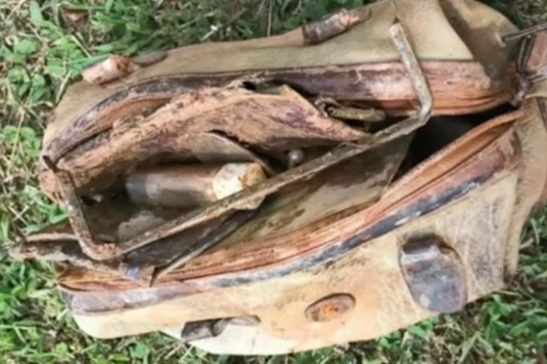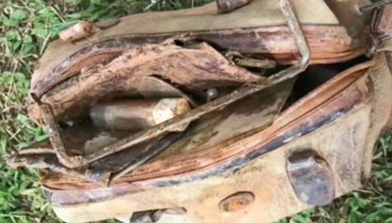 A boy fished an old bag out of the water, looked inside, and ended up calling the police