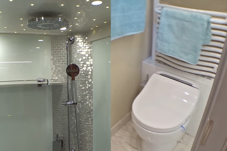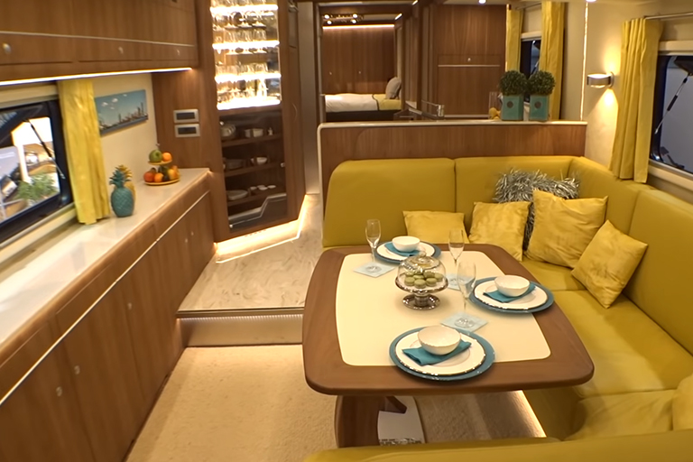 Just like the bedroom, this bathroom looks better than most of its counterparts that are found in hotels. You don’t have to compromise on luxury or comfort at all. It does come with a pretty high price tag, but it’s perfect for those of you that want to no longer be bound to a house. Absolute freedom!
