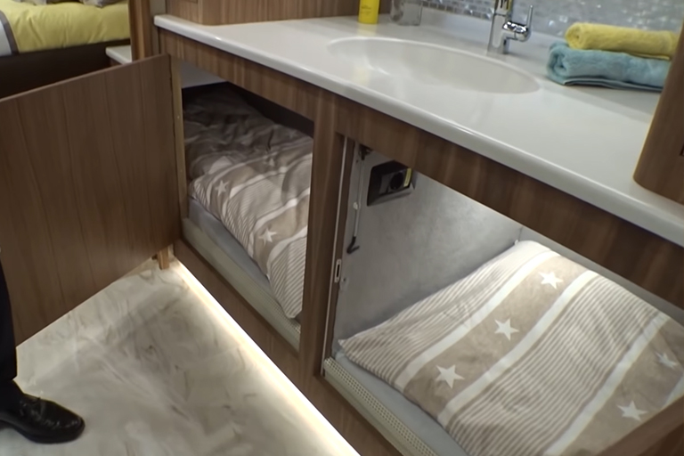 Yes, those cabinets under the sink are supposed to double as kids bedrooms. You spend 1.42 million euros on a mobile home, but then your kids needs to sleep in cabinets under the sink. Everyone to their own, but that seems a bit strange.