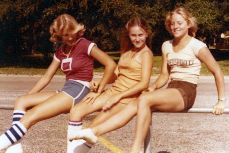 These four young women look like they are at a festival. We’re not sure where this picture was taken, but it looks like they’re having a great time! The woman in the middle is wearing a hat with the logo of the popular rock band Rush, which places this picture somewhere in the ’70s. We hope she got to see her favorite band!