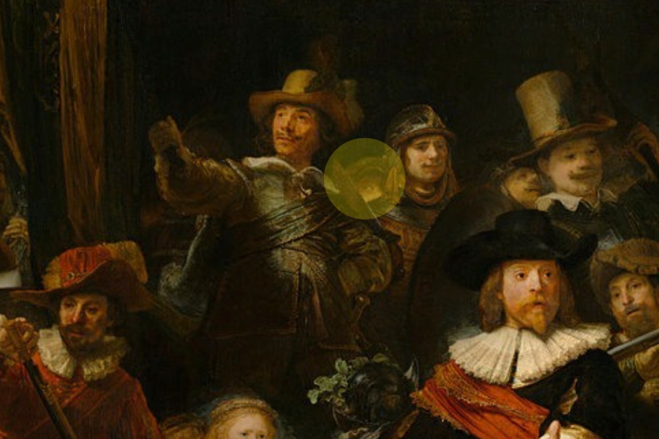 Rembrandt has hidden one specific thing in his painting. Since there is quit a lot going on, it might not be the first thing you notice. If you think you found the hidden secret, go to the next page where you will find the answer!