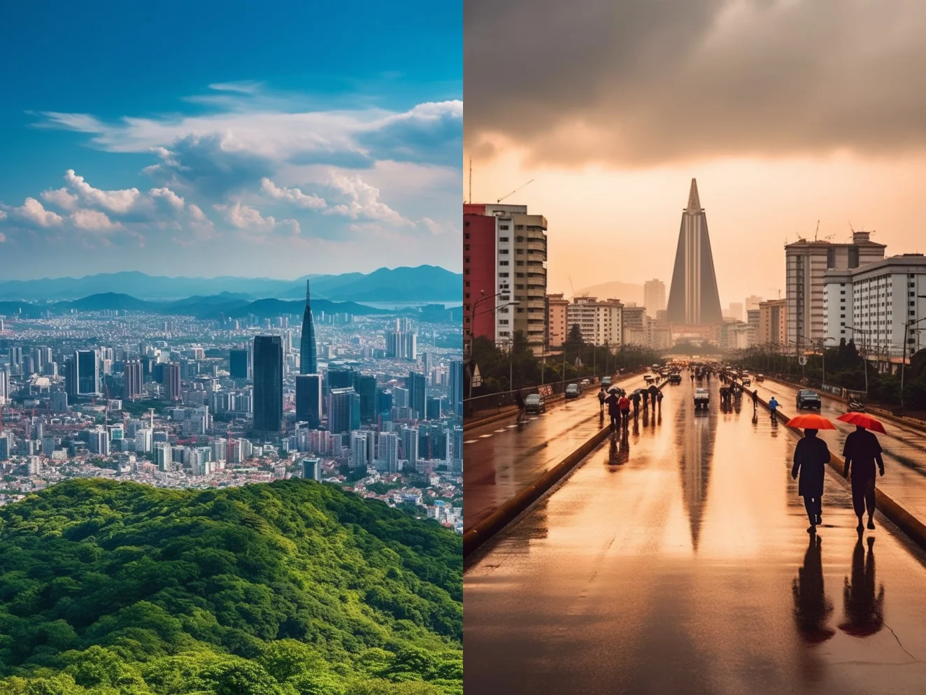Through Ji-Soo Kim’s lens, we gain insight into the complexities and nuances that define each country, navigating the landscapes, cultures, and lives that exist on opposite ends of the spectrum.
