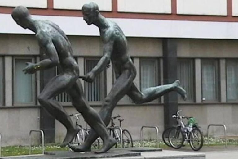 Be honest: what did you think these statues were doing? No, they’re not doing what you might think they are. These are statues of estafette athletes, passing on a baton. The angle from which the picture was taken creates a funny sight. Seen from another angle, there is nothing wrong with these statues.