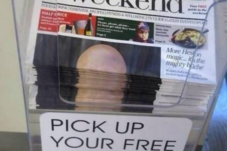 What did you first think when you saw this image? We sure hope you saw a stack of newspapers that all show a bald head on their front page. If not, you must have a really dirty mind. Granted, the way the newspapers are stacked do make for an… interesting optical illusion.