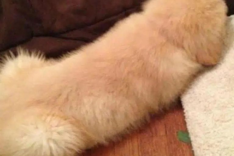 Cute dog, don’t you think? Or did you see something else in this picture? Really it’s just a furry dog that’s enjoying his life, laying down on a floor, with his head on a rug. This super relaxed dog has no idea what some of you might mistake him for.