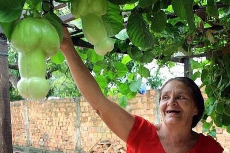 This adorable grandmother is showing her pride and joy: her fruit tree. Only someone with an extremely dirty mind would see something other than fruit. What did you think it was? We hope these fruits ripened shortly after, so that the woman in the picture could enjoy eating them.