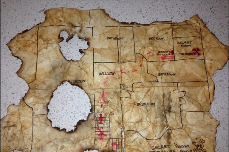 When the girl unfolded the piece of paper, she immediately recognized it as a treasure map. It was like one of those maps from pirate movies! The little girl was extremely excited by her discovery. It felt like something straight out of her wildest dreams: a real life treasure map, found in her own house! She couldn’t wait to solve it.