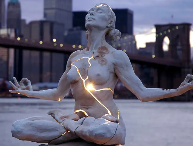 Imagine a superhero, powerful and bright, born from a magical statue! That’s what artist Paige Bradley made. It’s not just any statue, but one that looks like it has been struck by lightning, full of cracks yet shining so brightly.